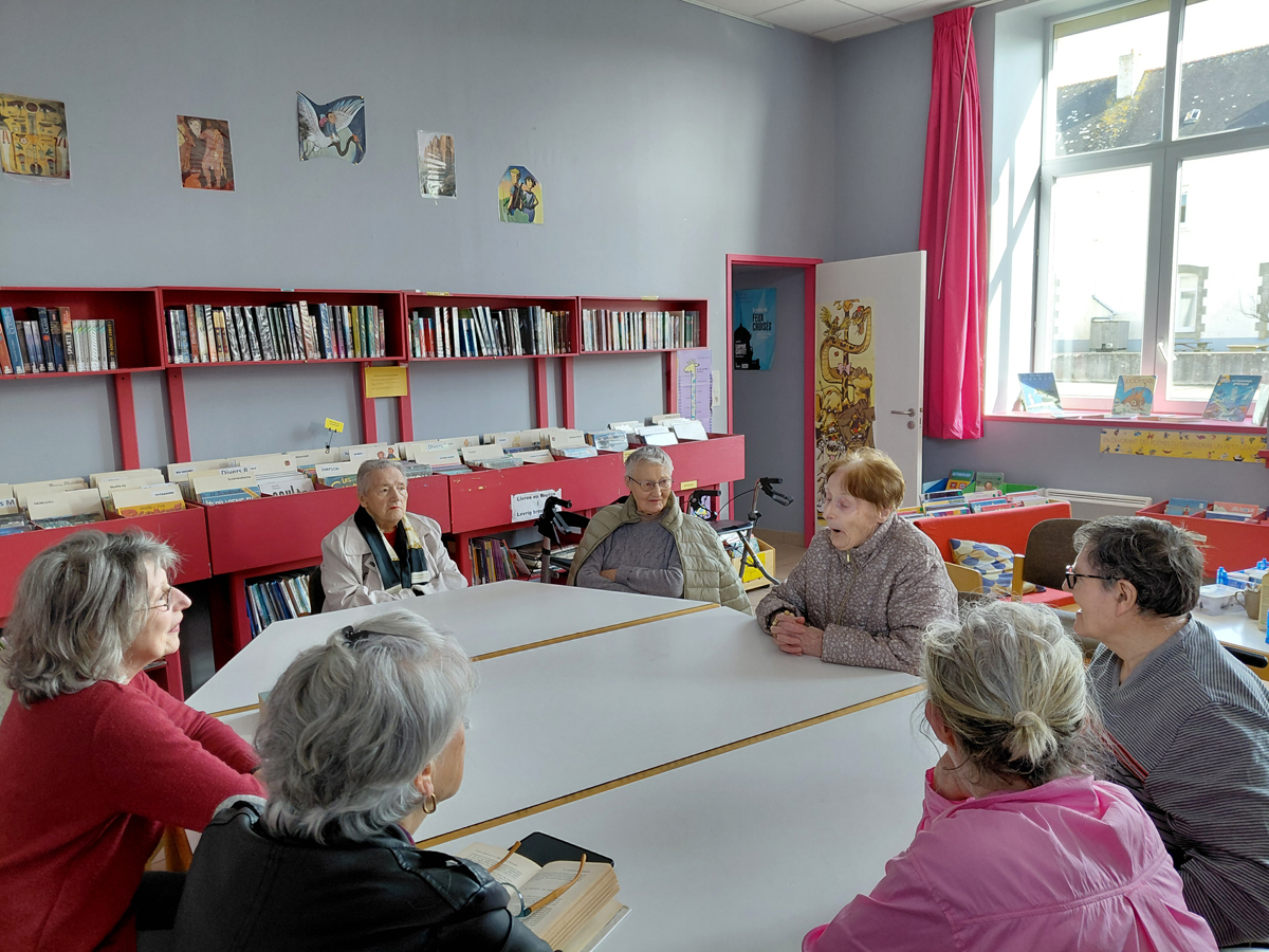 Chaque mois, la bibliothèque organise avec des bénévoles de la bibliothèque une rencontre à l’EHPAD Ménez Kergoff.