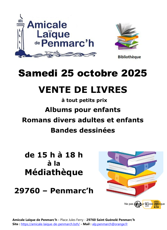 Samedi 25 octobre: Vente de livres 14 octobre 202514 octobre 2025 Une vente de livres aura lieu le samedi 25 octobre de 15h à 18h à la médiathèque. Venez nombreux ! Webmestre Navigation de l’article 6 octobre 202513 octobre 2025Bibliothèque: les 10 ouvrages les plus empruntés en septembre 2025
