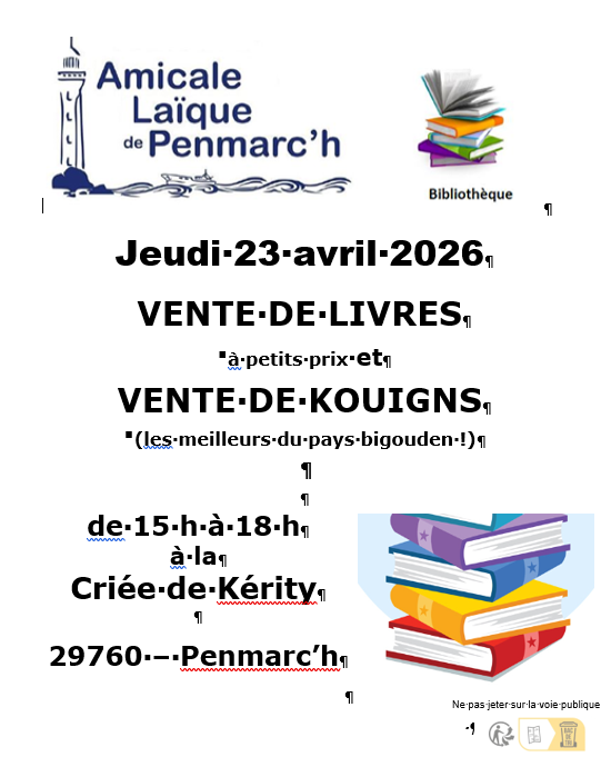 Vente de livres le jeudi 23 avril à la criée de Kérity (avec les fameux kouigns)